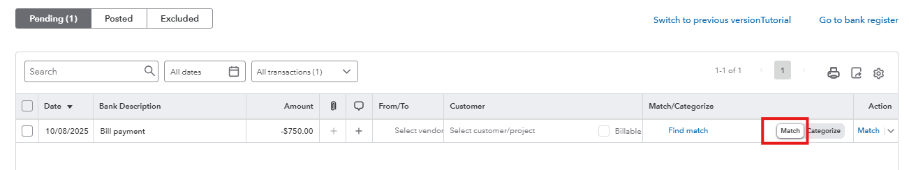If you are using online banking and automatic sync feature this creates duplicate transaction entries. To avoid this, you can match the bank feeds transactions to the transactions synced from Clover.