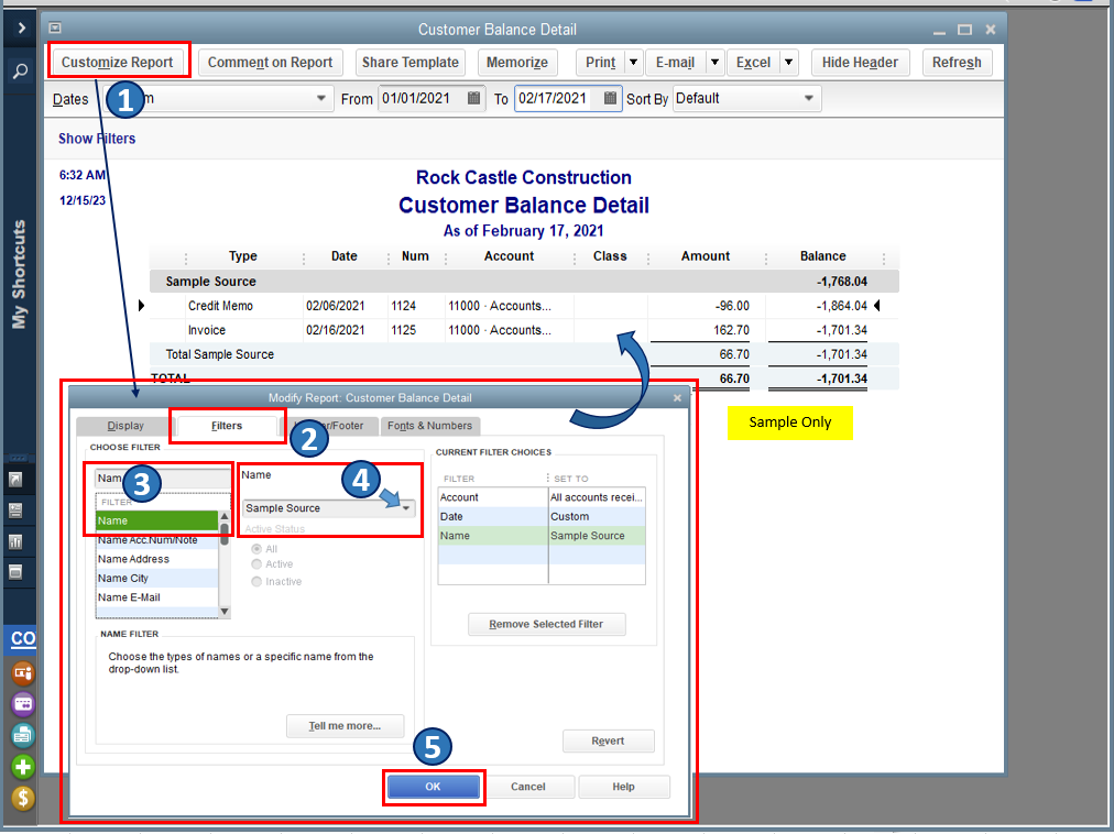 While you're on the Customer Balance Detail report window, you'll have to filter its display for a single customer's transactions. Let me guide you how.