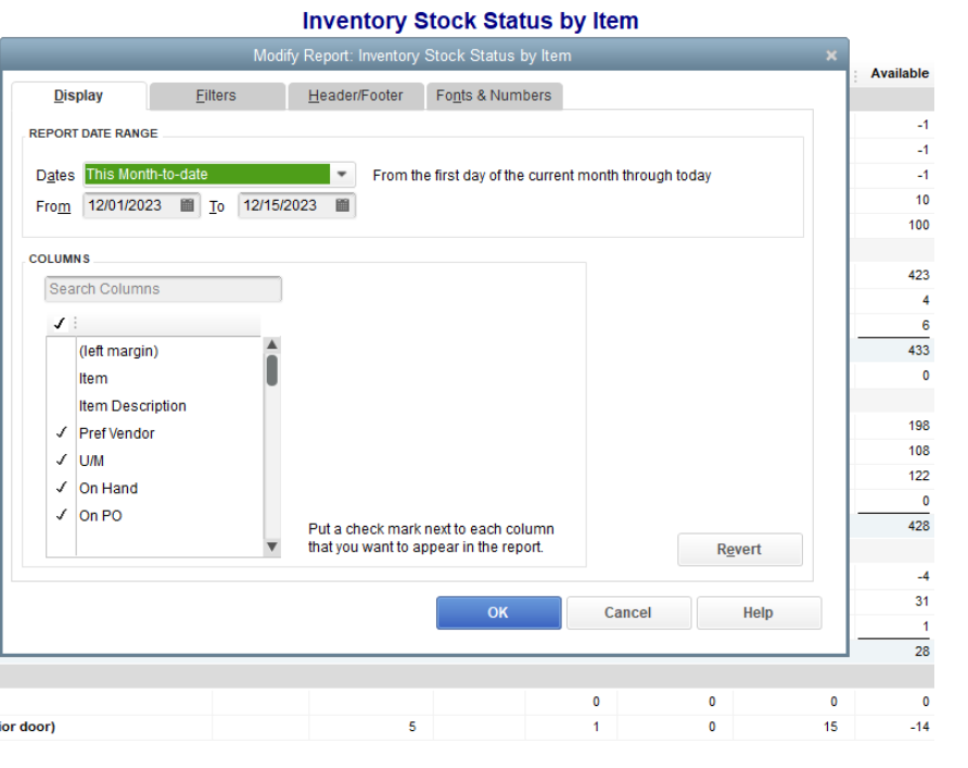 Buy nowUsing QB Enterprise Desktop - we have a need to add extra columns to the "Inventory Stock Status by Item" report; however, we are unable to figure out if this is possible. Please advise if there is a way to do the following:
