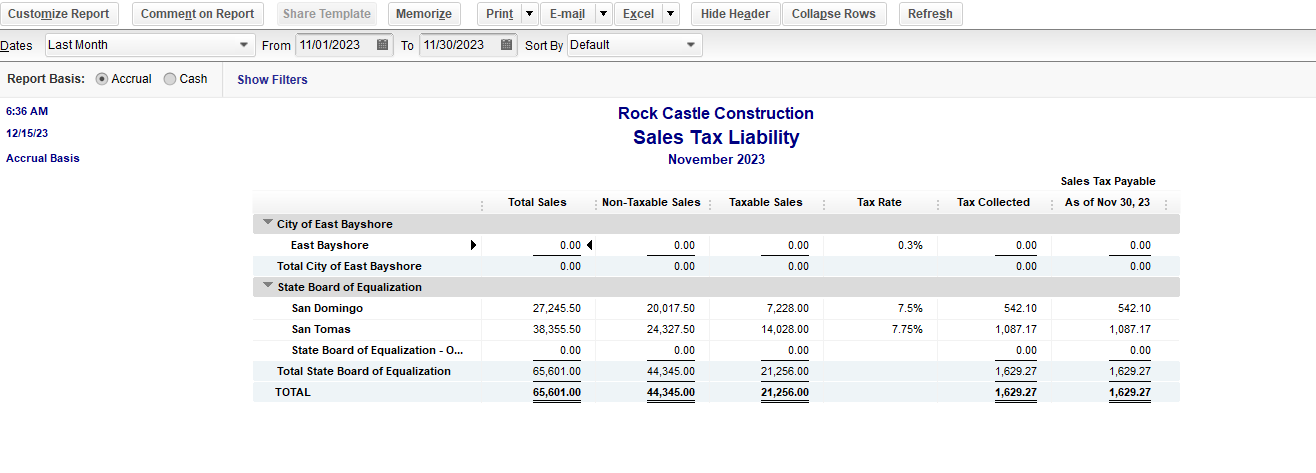 Due to the nature of our business, we report only the collected sales tax to the state. So we need to see the invoice, invoice date, and when the invoice was paid to report the sales tax.