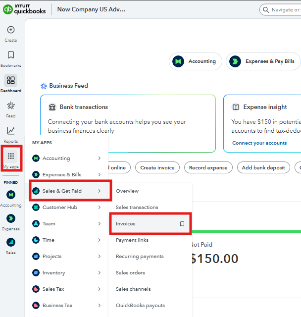 - Pick Sales & Get Paid and choose Invoices.