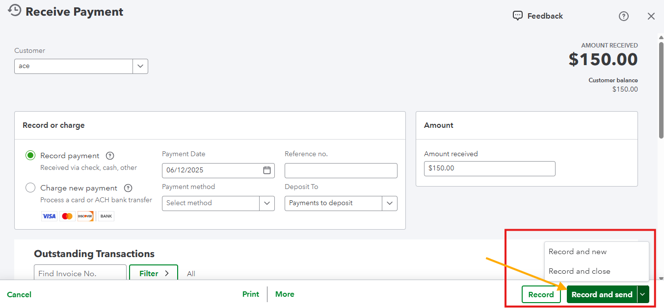 Anyway, I don't have that option (see attached), for https://qbo.intuit.com/app/recvpayment Perhaps that option is also only in the new UI?