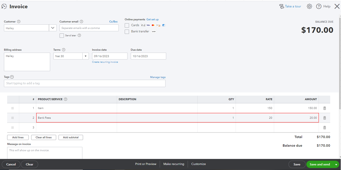 Once done, include the processing fee as an additional line item to your invoice to charge your customers. I'm adding this screenshot as your visual reference.