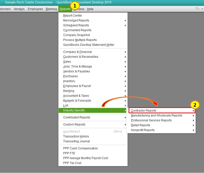 Since you don't see the Industry Specific or Job Costing options in the reports section, I recommend contacting a member of the Desktop Support Team. Members of this team have specialized tools, like the ability to share your screen, to take a closer look and determine why you aren't bale to view these specific reports. Here's how to get in touch with an agent: