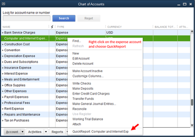 To do this, you'll want to go to your Chart of Accounts and run a QuickReport on the expense account in concern. Then, double-click the incorrectly entered reimbursement transactions to edit them.