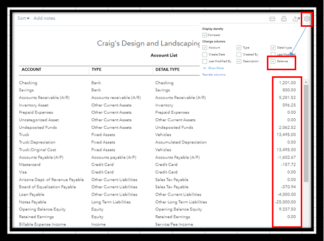 There's a possibility that the Balance box is unchecked. That's why it does not show the totals for entries made in all the accounts. Follow the steps on how to check this setting: