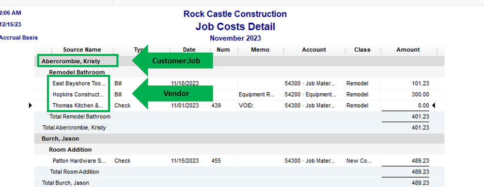 While there isn't a specific report in QuickBooks Desktop (QBDT) that shows vendors bills with missing customer name, you'll want to run the Job Cost Detail report as an alternative. The report shows all the vendor bills that are under a Customer:Job.