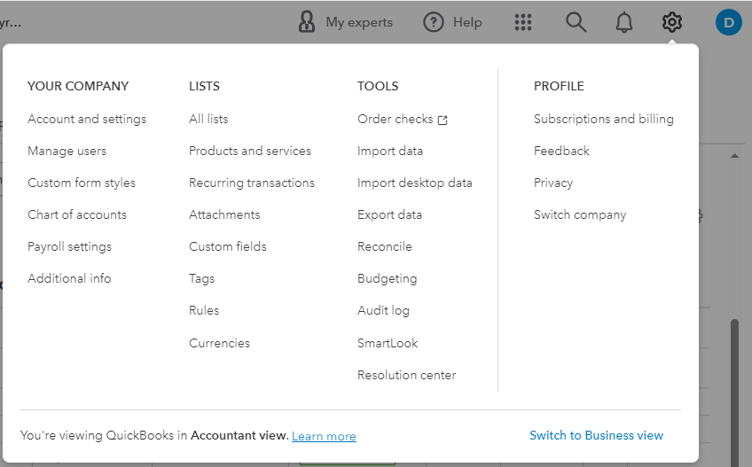 To turn off the suggested categorization feature, you can switch to the Accountant View to see the banking menu. You can change it from the Gear icon and click the Switch to Accountant view at the bottom. See the screenshot below.