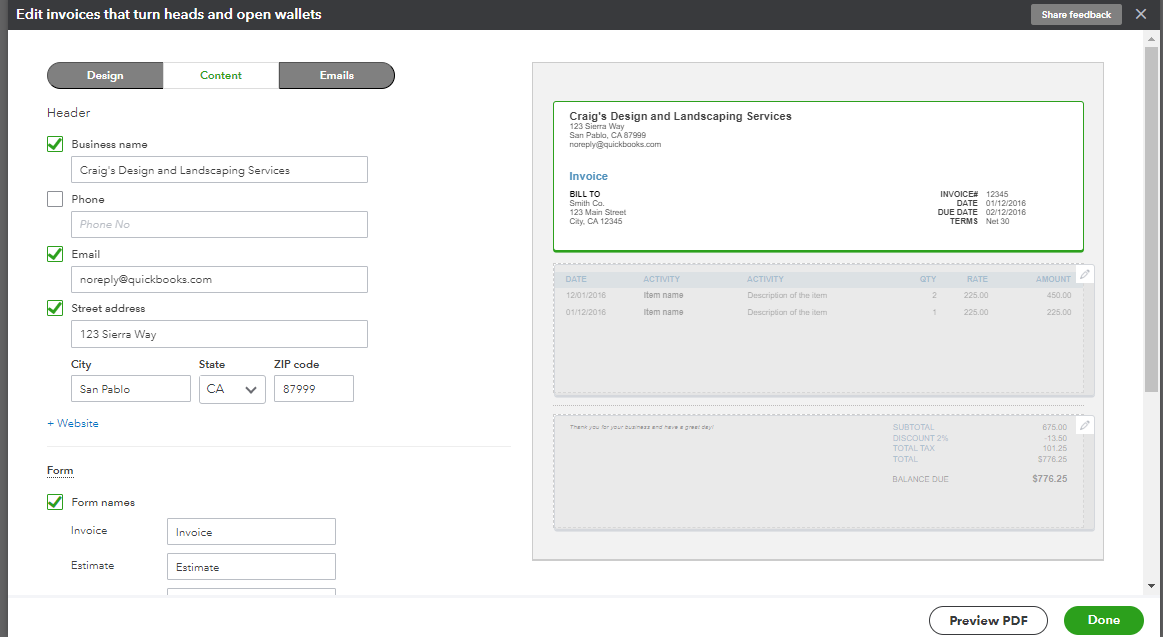 On my mobile app how do I update my company address on the invoice header