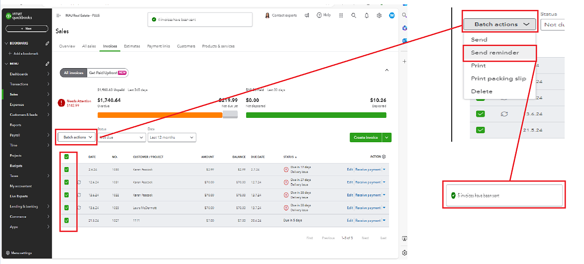 To begin with, you may check if the automatic emailing or recurring invoices are enabled. One way of sending invoices in bulk and at a later time is through batch action.