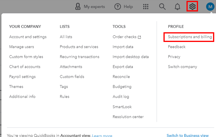 To review your subscription, you can go to the Gear icon. Under Profile, select Subcriptions and billing. I've added a screenshot below for your visual reference.