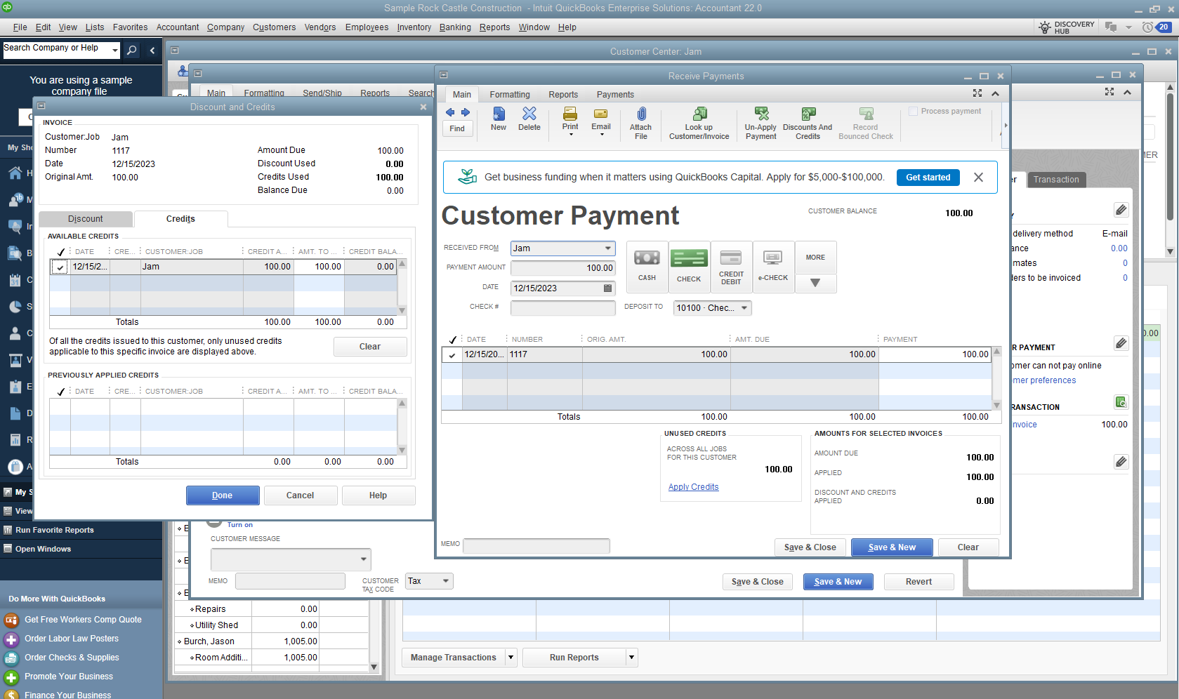 Once done, we can link the Credits to the open invoices by utilizing the Receive Payment feature. Here's how: