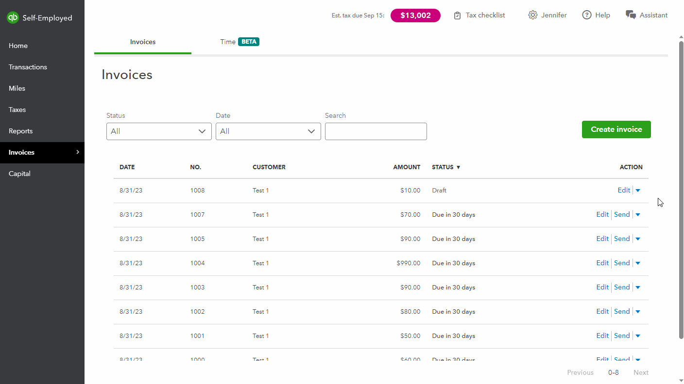 When I click into them, the top two say "Draft" and the bottom one says "Due in 8 days (Not sent)" for further clarity.