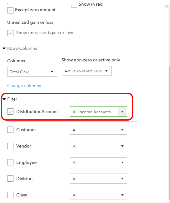 We can run a Profit and Loss report and customize it to only show income. Here's how: