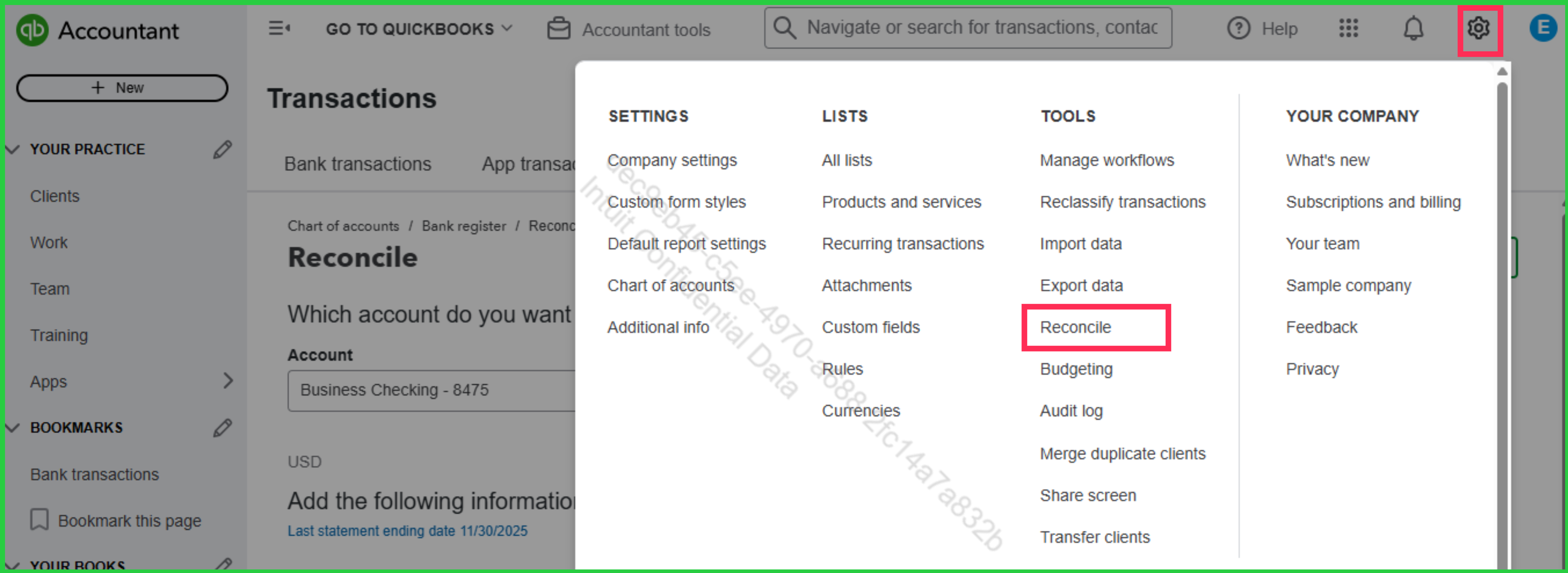 1. Go to the Gear icon, then select Reconcile.