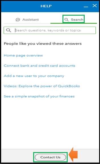 Also, you can see the Contact Us option at the bottom when you select the Search tab. I've added a screenshot for your guide: