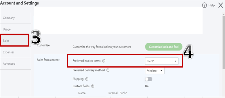 To successfully set up the terms as Net30, you’ll need to enable or select your preferred invoice terms in the Account and Settings.