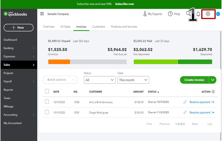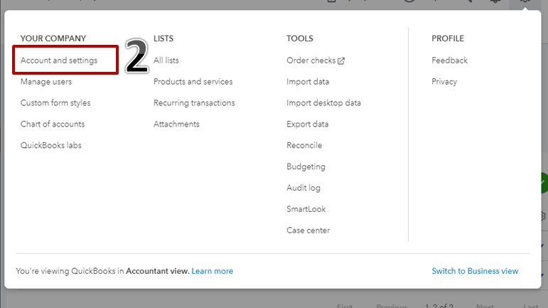 - In your QuickBooks Online, click the Settings icon on the upper right corner.