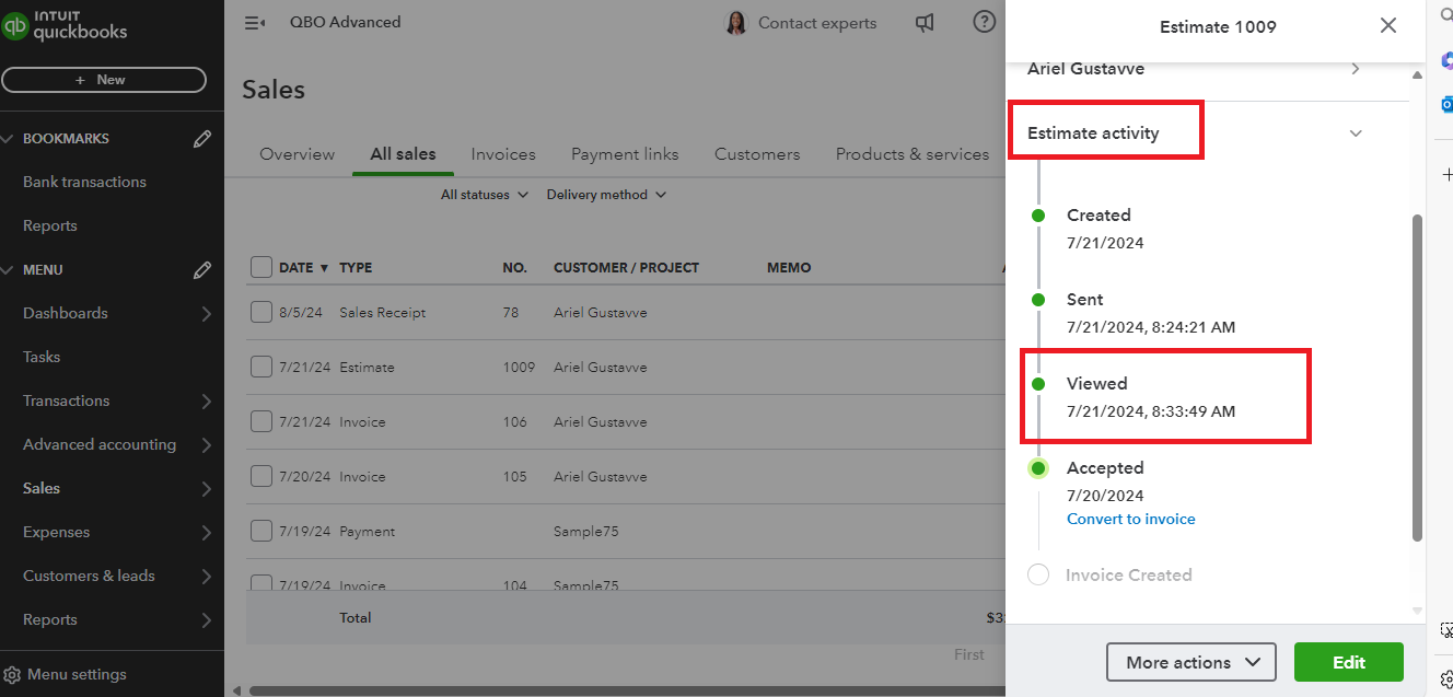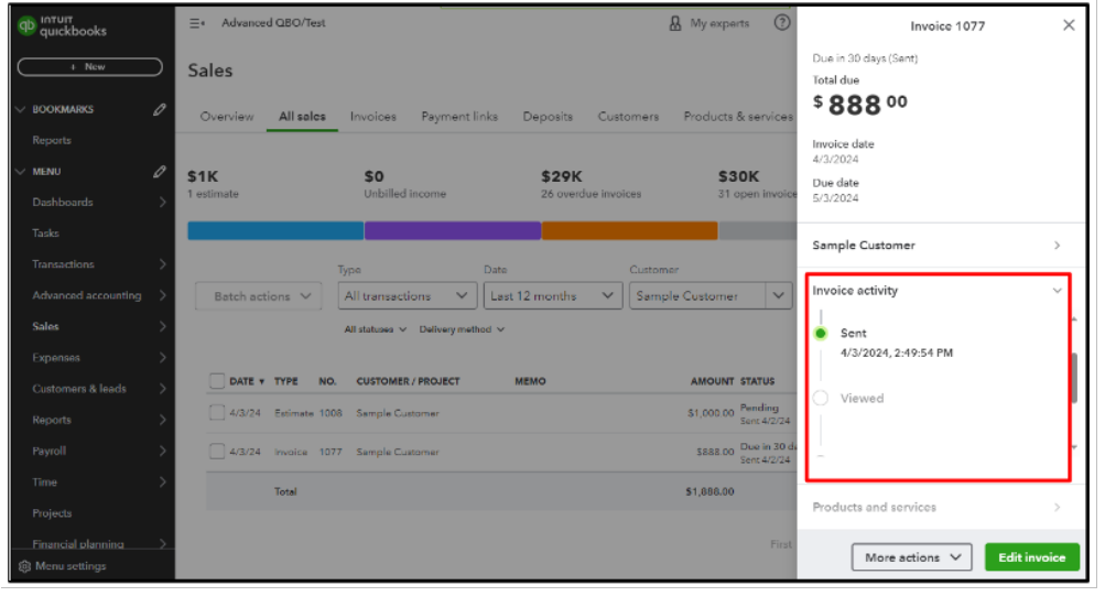 QuickBooks Online (QBO) has recently changed the location of the invoice status history. Let me guide you through the process of checking the status of an invoice.