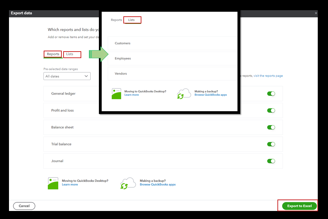 Also, you can export lists, reports, non-posting transactions, and attachments in the only program. It only takes a few clicks to do this in your company. Here’s how: