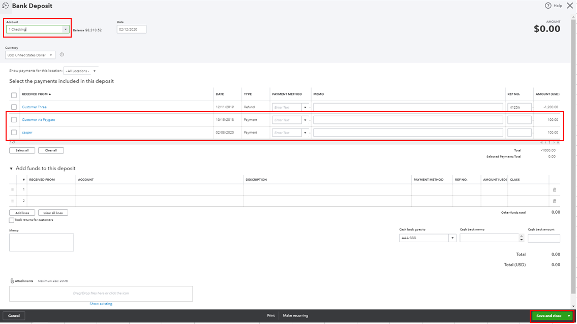 Moving forward, we can use the Undeposited Funds account to hold your invoice payments and sales receipts you want to combine. Once you have your deposit slip, we can make a bank deposit in QuickBooks to combine those payments into a single record to match. Doing this process ensures QuickBooks always matches your real life bank records. It also makes your reconciliations much easier.