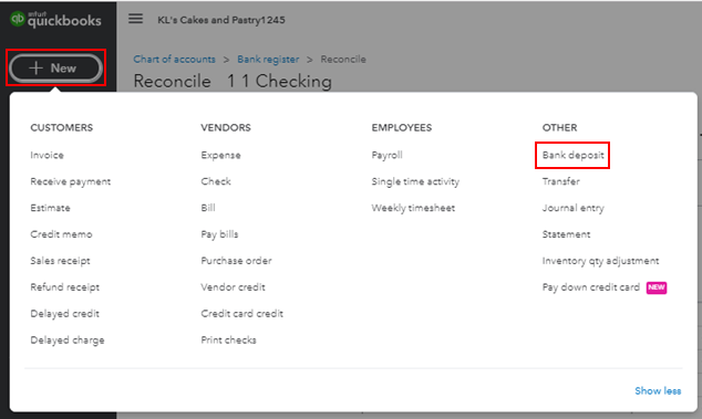 Before we proceed, please know that the article shared by my peer about undeposited funds just explains how it works in QuickBooks. Also, if those transactions are downloaded from your bank, QuickBooks only depends on what your bank's provided. You should add or match your transactions in QuickBooks before you process the reconciliation.