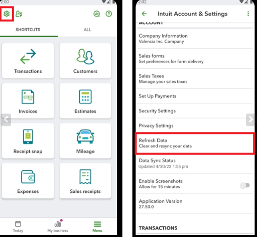 - In your QuickBooks Online Mobile App, select the Gear icon.