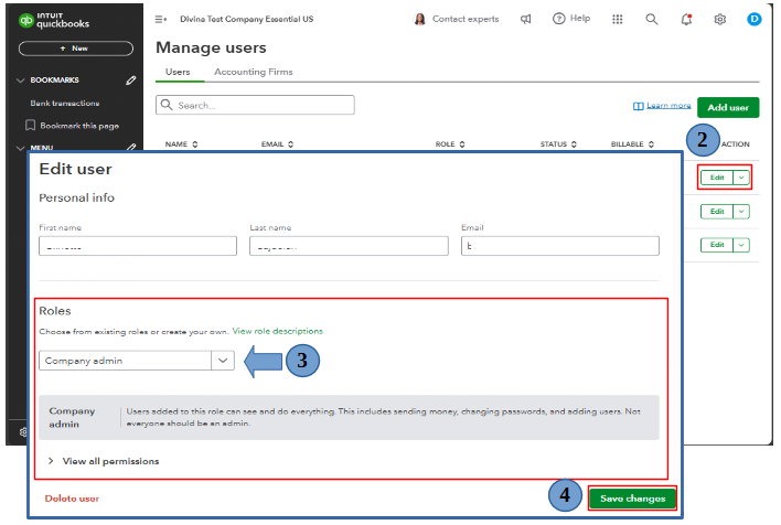 Let's start by checking your driver's user permissions, as only admin users have the ability to track mileage in QuickBooks Online (QBO). If you need to update their role, here’s how to do it:
