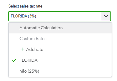 To resolve this, refer to your Sales Tax Liability report and verify whether you’ve selected your Florida tax rate in the Select sales tax rate section. If Automatic Calculation is currently set, please update it.