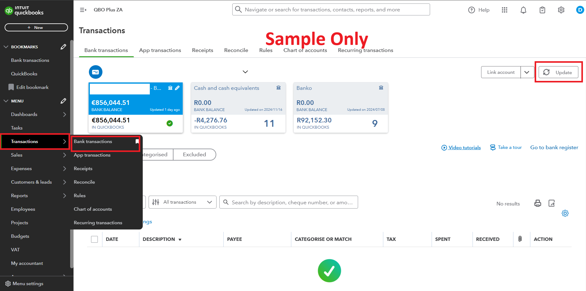 To show your newest transactions at the top of the list in Bank transactions, you can perform a Manual Update to ensure you retrieve the latest data from your online banking account.