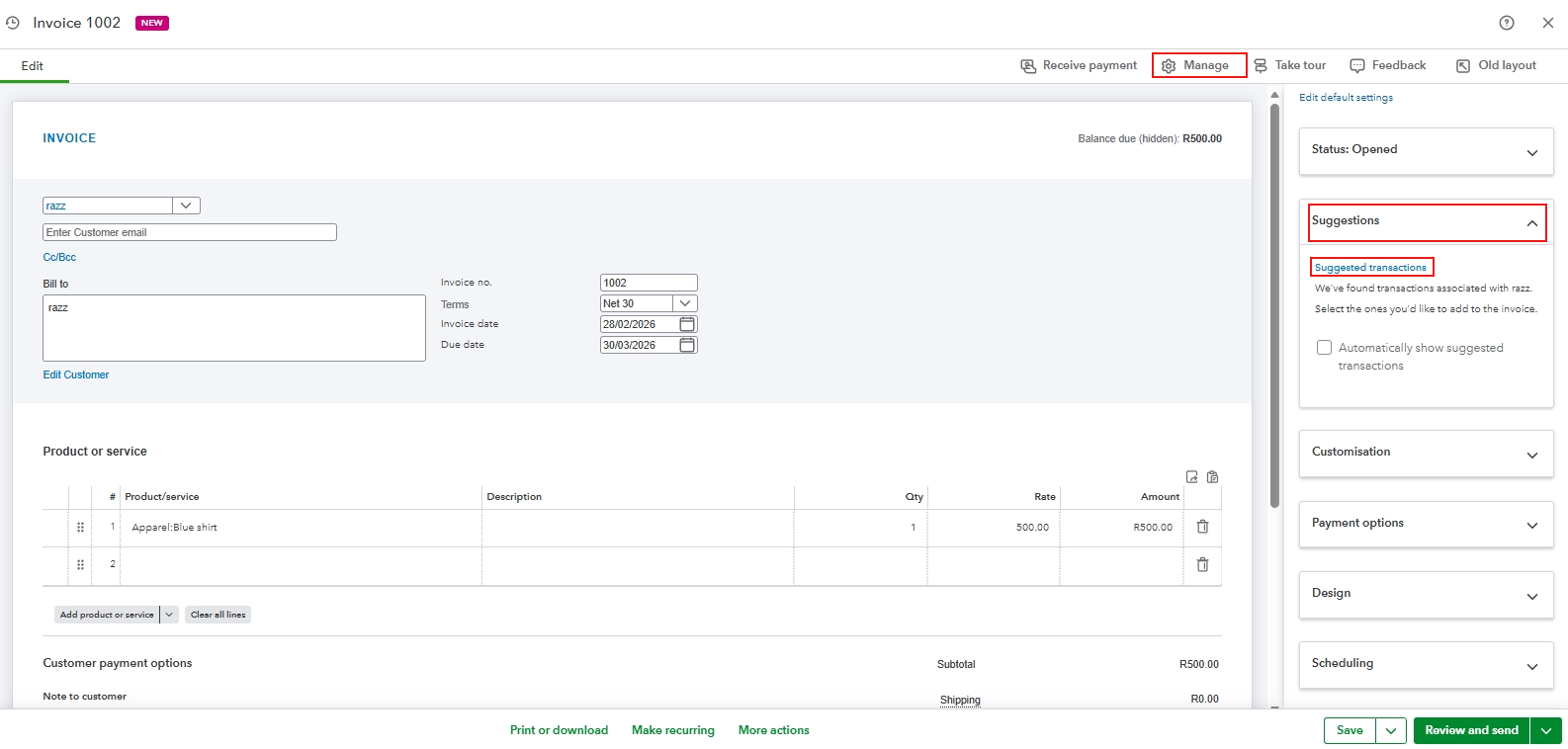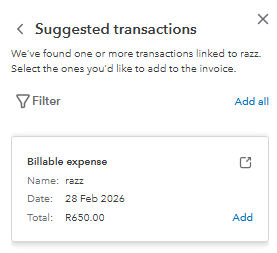 - Review the Suggested transactions and click add to link the billable expense.
