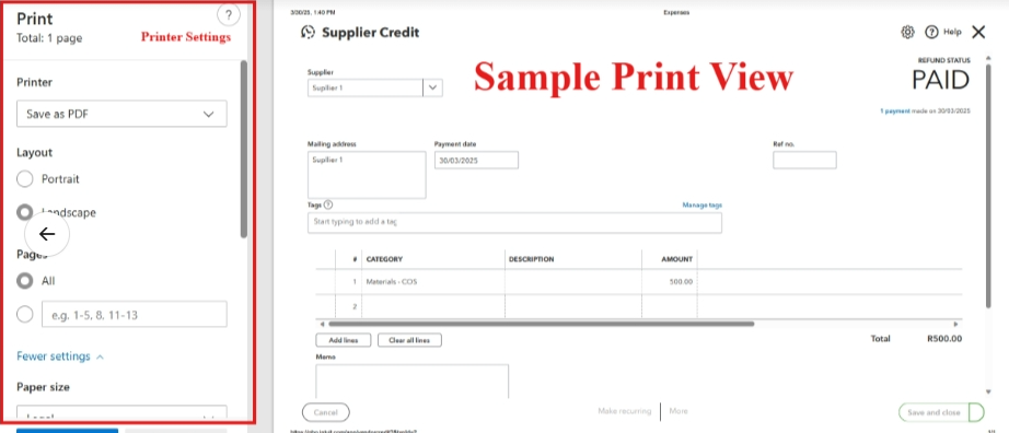 By following the steps below, here are some simple steps to help you print the supplier credit:
