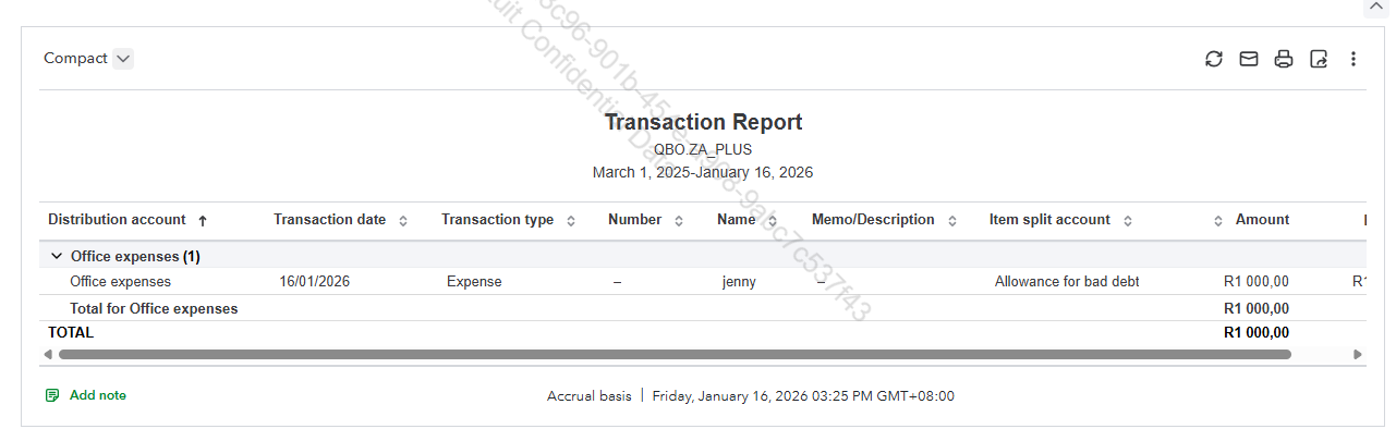 Expense transactions not show in the Trial Balance due to applied filters, such as the report period, specific date ranges, or options like “Show non-zero accounts” or “Show active accounts only.”