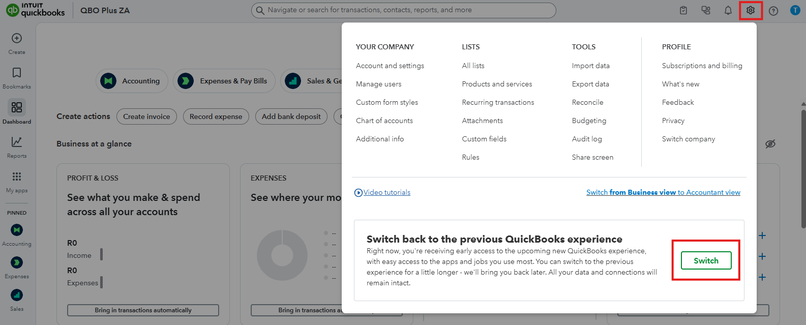 You can switch to the old version from the Gear icon located at the top-right of your QuickBooks Online page, @damexelectrical.