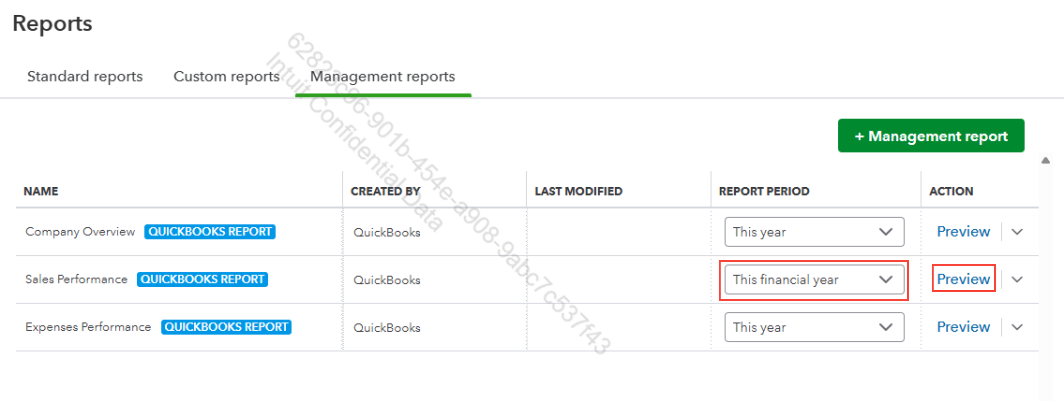 After updating the financial year in QuickBooks Online, let's check the management report to see the changes.