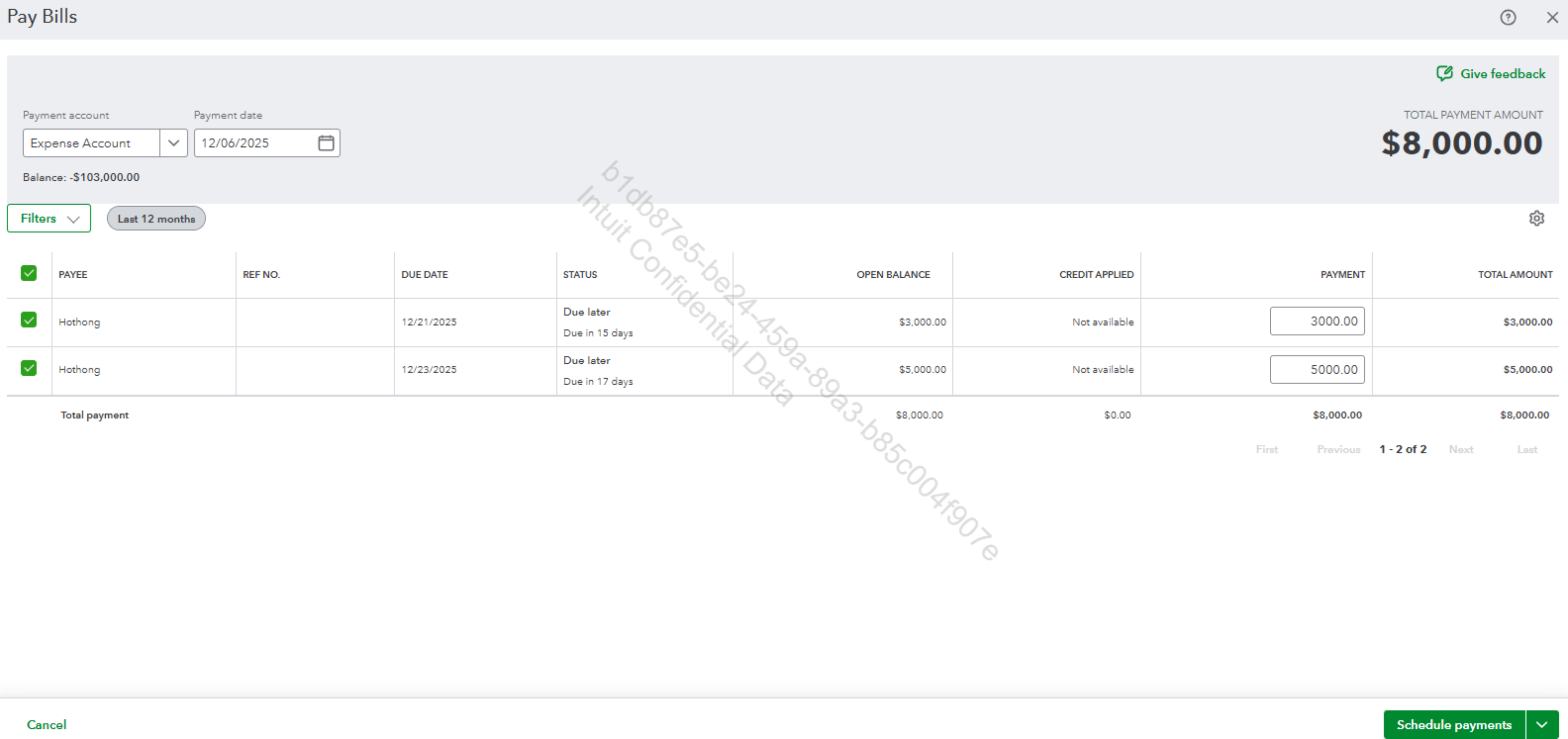 - Cliquez sur Planifier les paiements (Schedule payments).