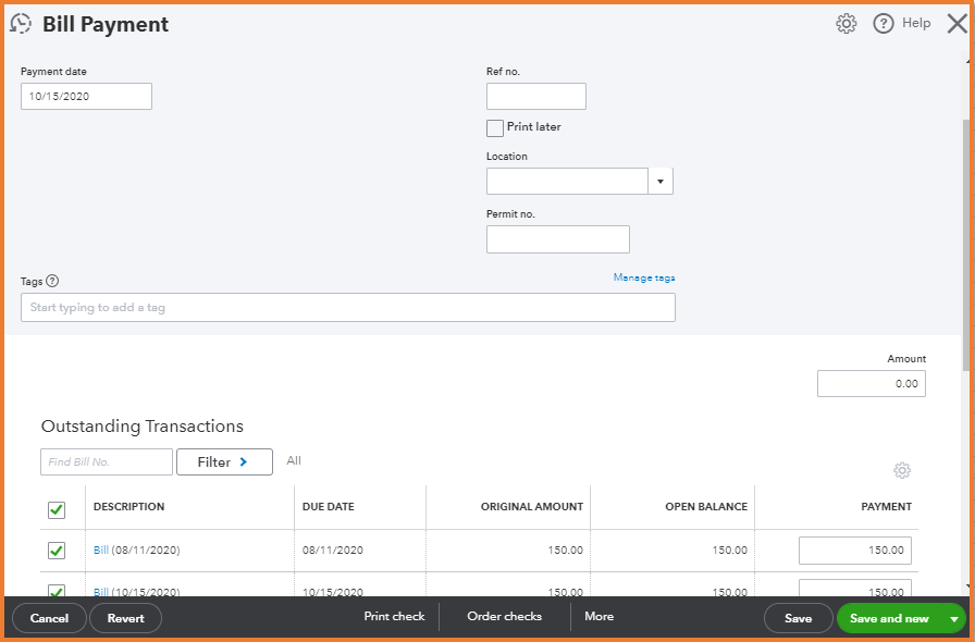 If you have created a bill to record the Google invoice then made 4 separate bank payments, you'd want to make sure to pay the bill 4 times in QuickBooks too. Here's how to create a bill: