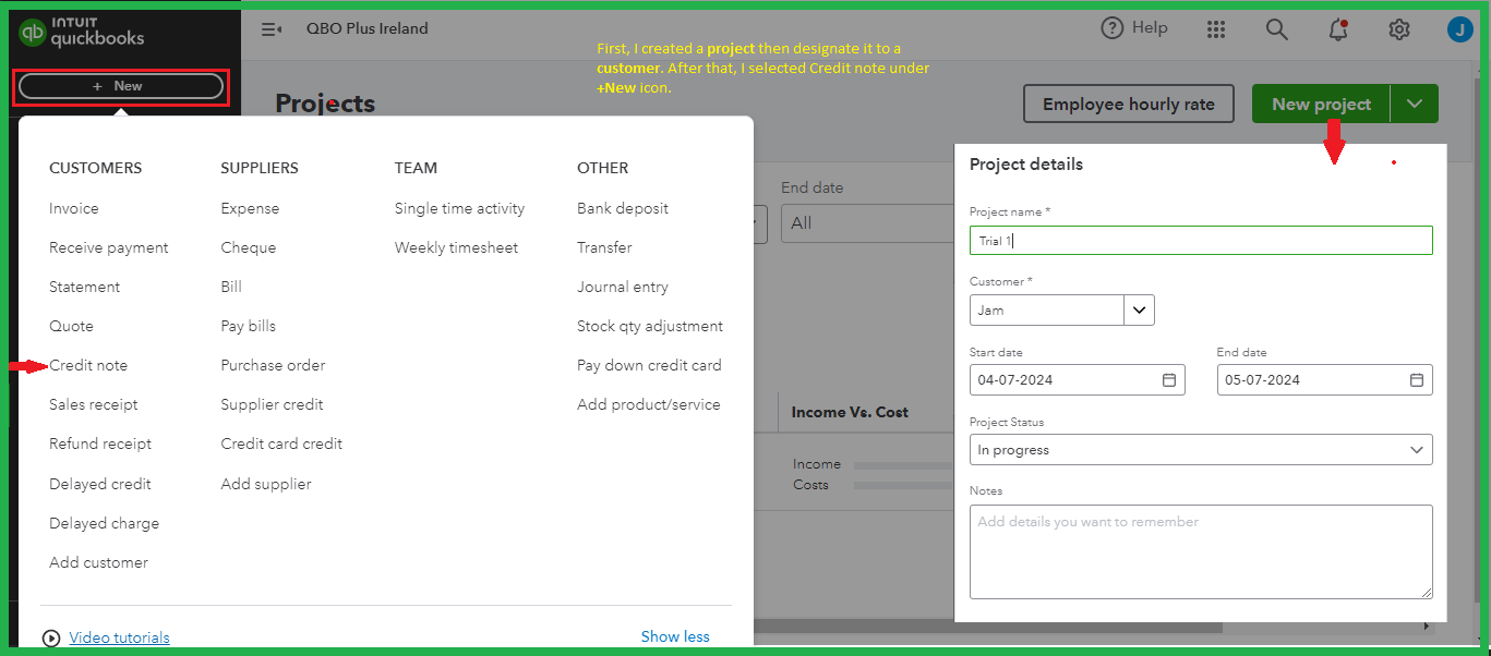 It's my pleasure to walk you through adding a credit note to a project, Pearse.