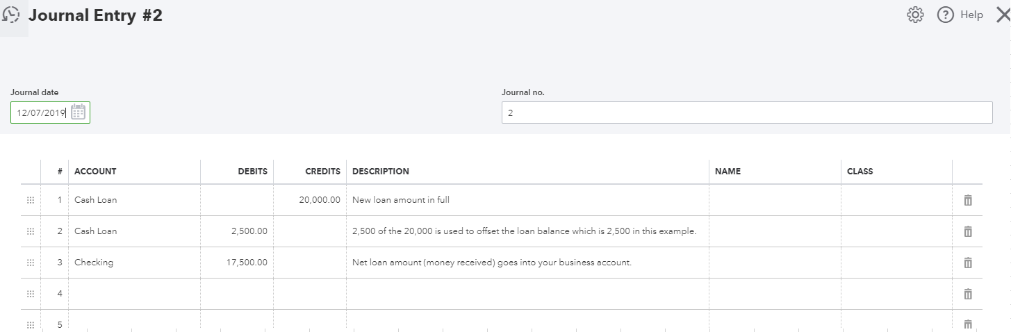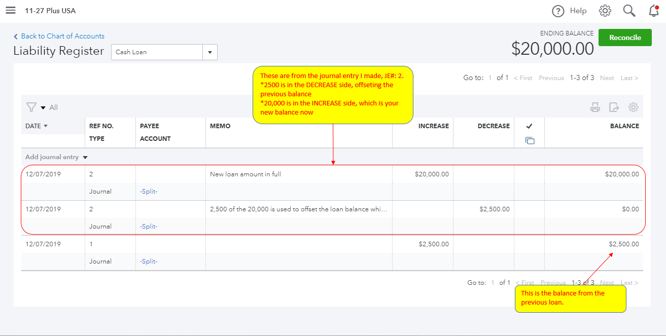 Let’s record your new loan and use a portion of it to pay the balance of the old one. To achieve this, we’ll record it via journal entry, and we’ll use your existing loan account in this transaction.