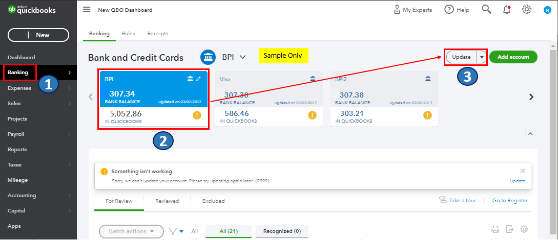 Once your bank is performing system maintenance, you can manually update your account. This refreshes the connection between your financial institution and the program. Let me guide you how.