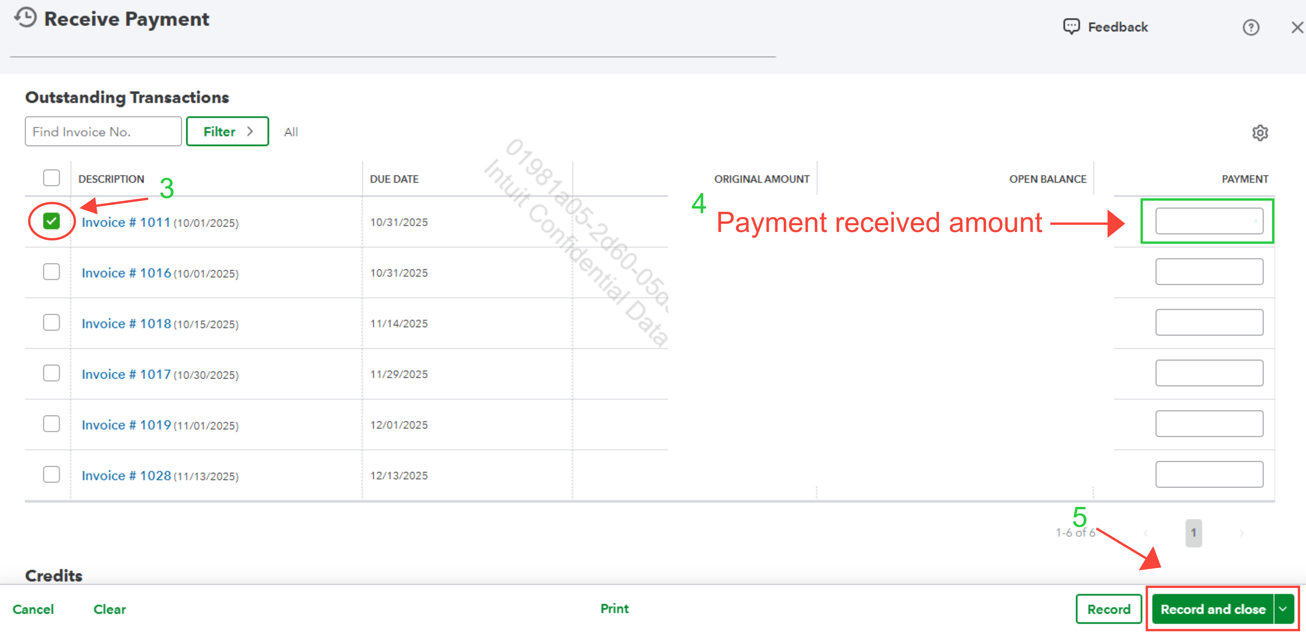 3. In the Outstanding Transactions section, select the specific invoice and tick the box.