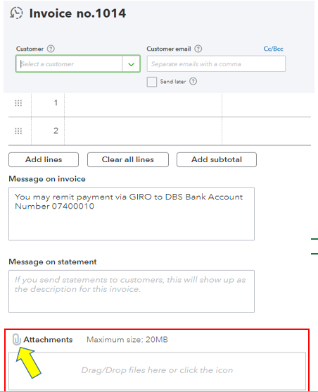You can use the Attachments box to include an image of your signature or to add a company stamp. I'll show you to accomplish it: