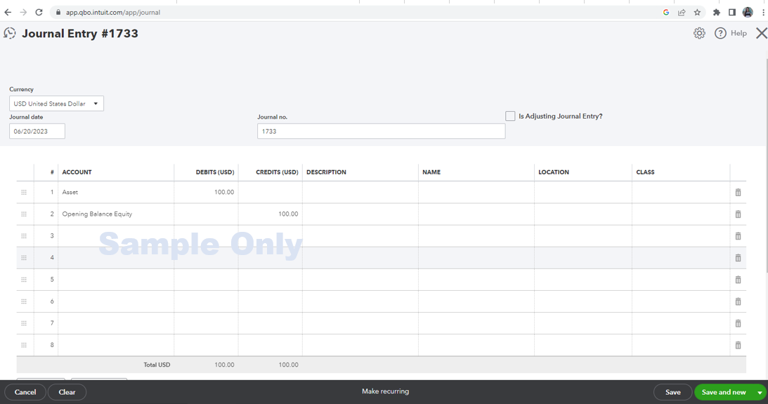 You can use a journal entry to add an opening balance to your active account for accurate financial records. Here's how: