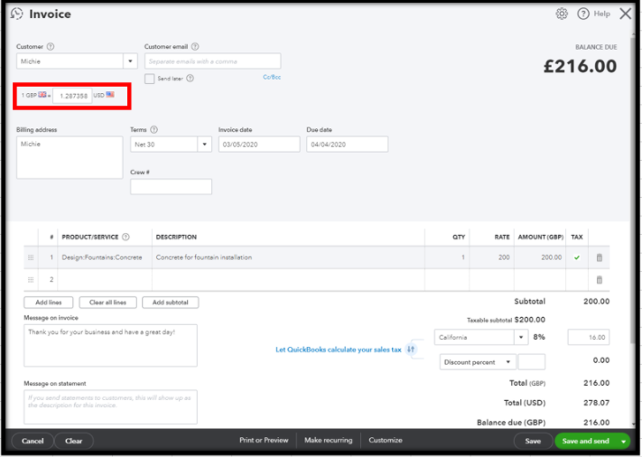 Please note that once you turn on the multicurrency, you can't undo. Also, you're unable to change the currency for an existing customer. You'll need to create a new one with a different profile and be sure to select the foreign currency during creation.