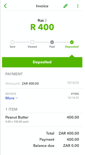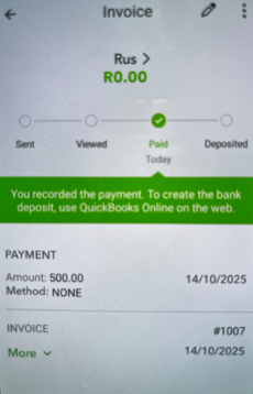 In the QuickBooks Online mobile app, paid invoices won't automatically appear as deposited, @ontheroadmechani.