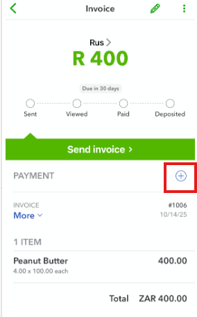 If you are using an Android phone, you can record a payment for the invoice, but the payment will not automatically be marked as deposited. You'll need to create a deposit transaction using a web browser.