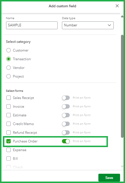 Since editing your purchase order template is unavailable, you can consider adding custom fields. This functionality lets you add additional information to your records that isn't captured by the standard fields provided by the system. If you want to create this, please follow the steps below:
