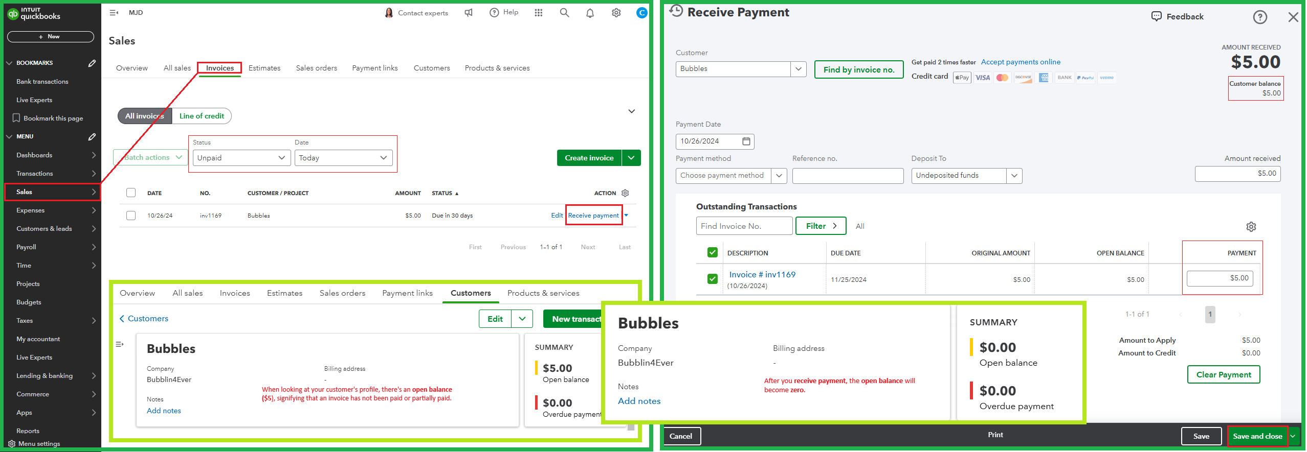 Let's receive the payment on an invoice to zero out your customer's opening balance, shakirarain. It's my pleasure to guide you through the process quickly and easily.