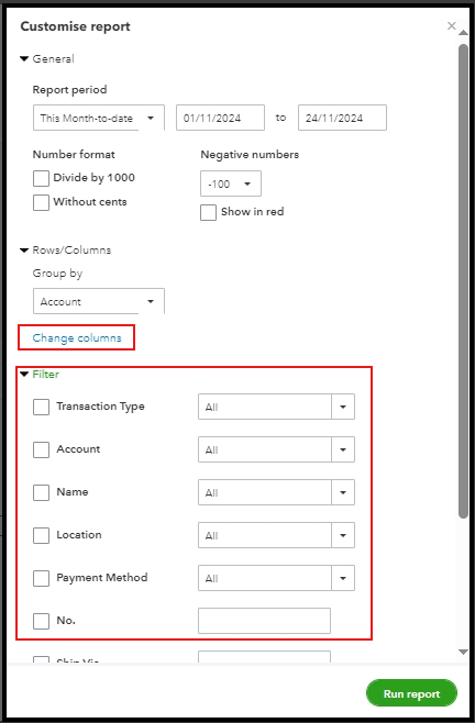 For more detailed information on customizing your report, check this guide: Customize Reports in QuickBooks Online.