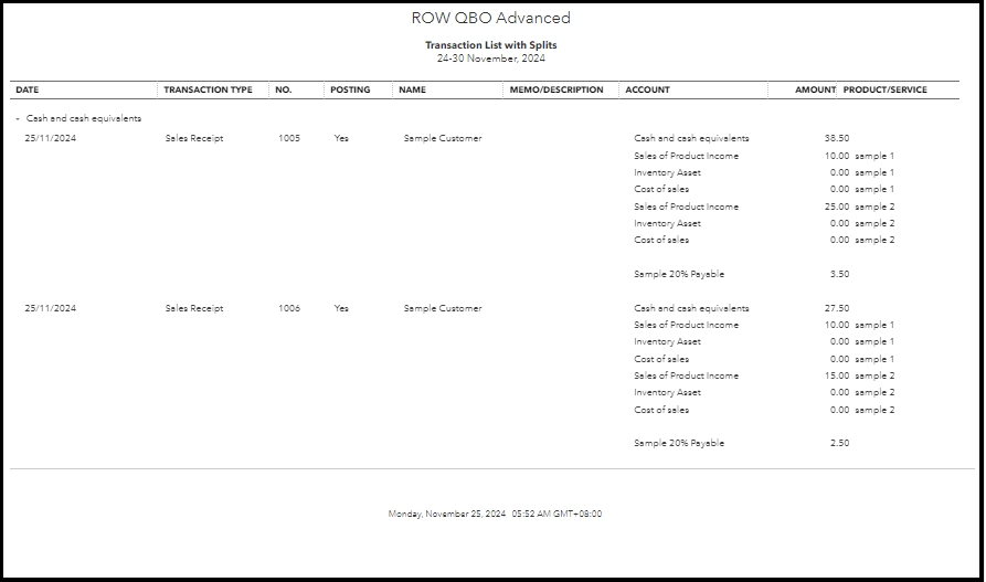 After categorizing and listing your services, I can assist you in generating and customizing a Transaction List with Splits report in QuickBooks Online to show different items under the service line. Here are the steps: